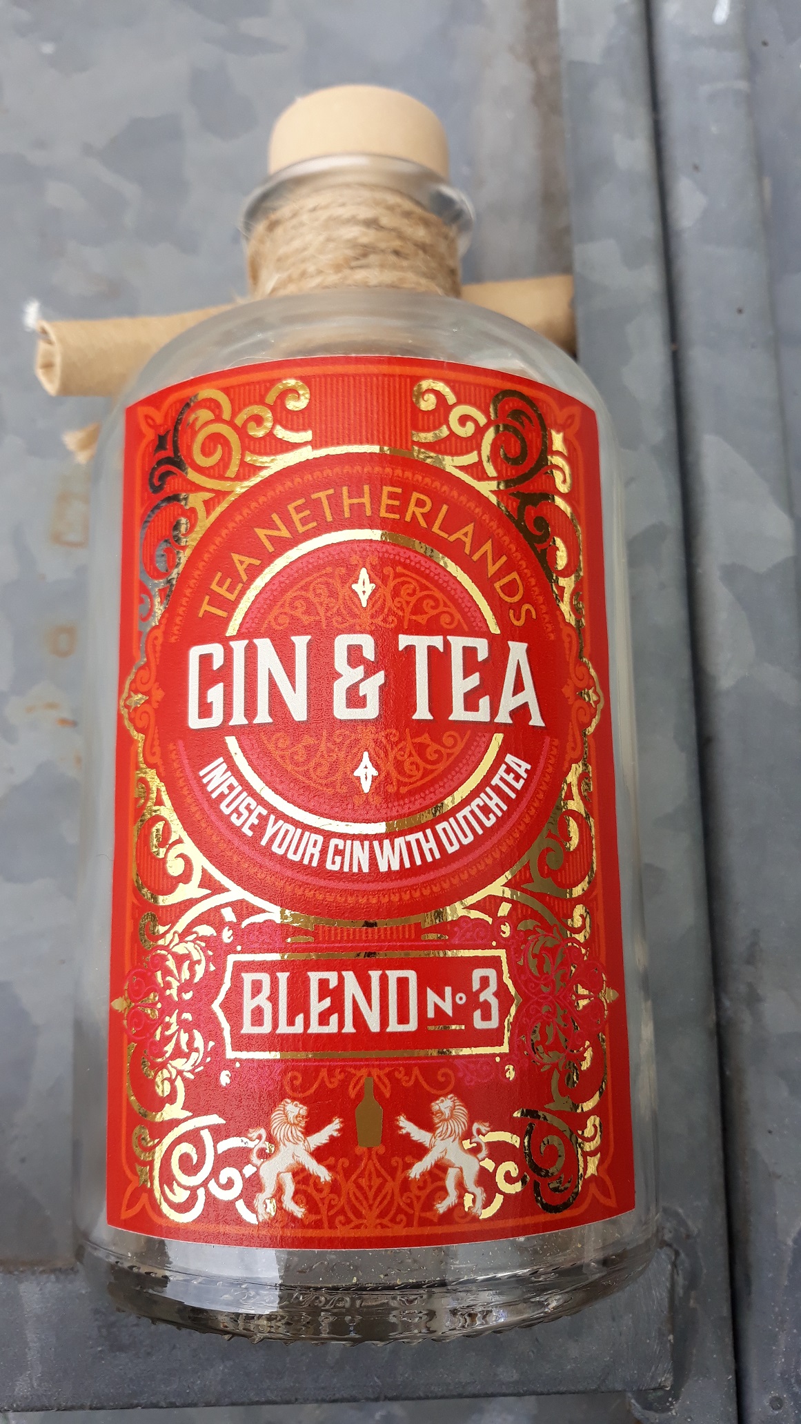 Voeg gin toe aan deze fles, kan ook met vodka of jenever