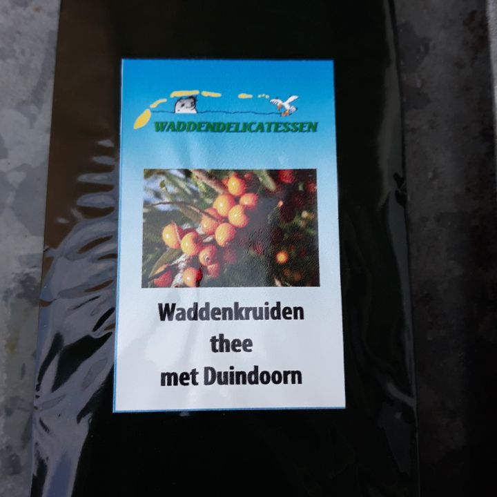 Product van Waddendelicatessen. Thee met kruiden en vruchten uit de Waddenregio.